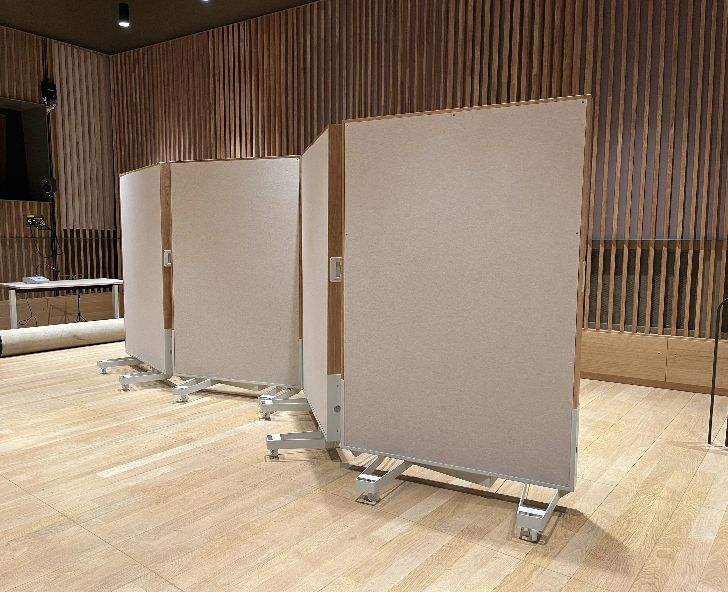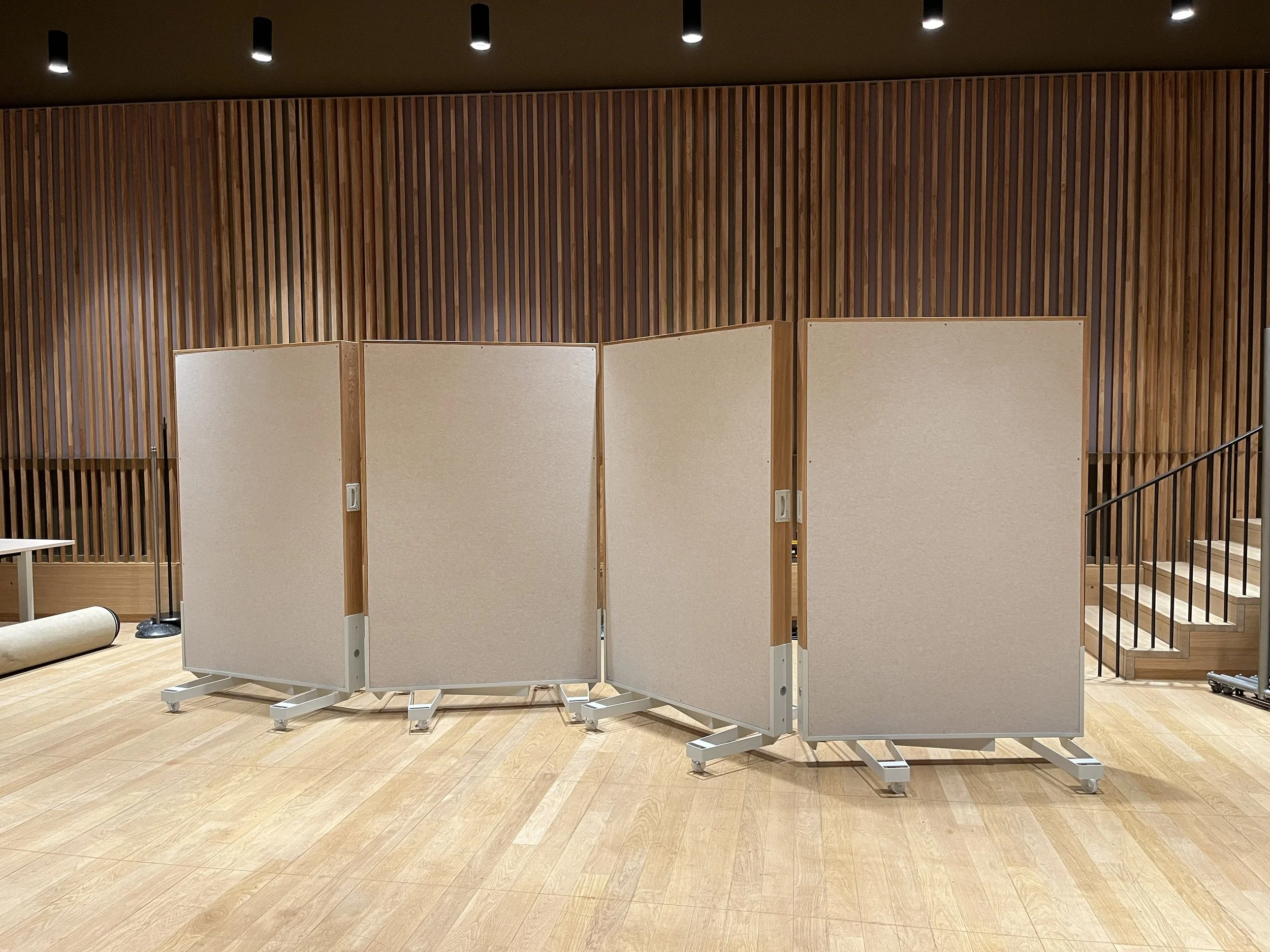 Panneaux acoustiques mobiles, absorbants et diffusants.