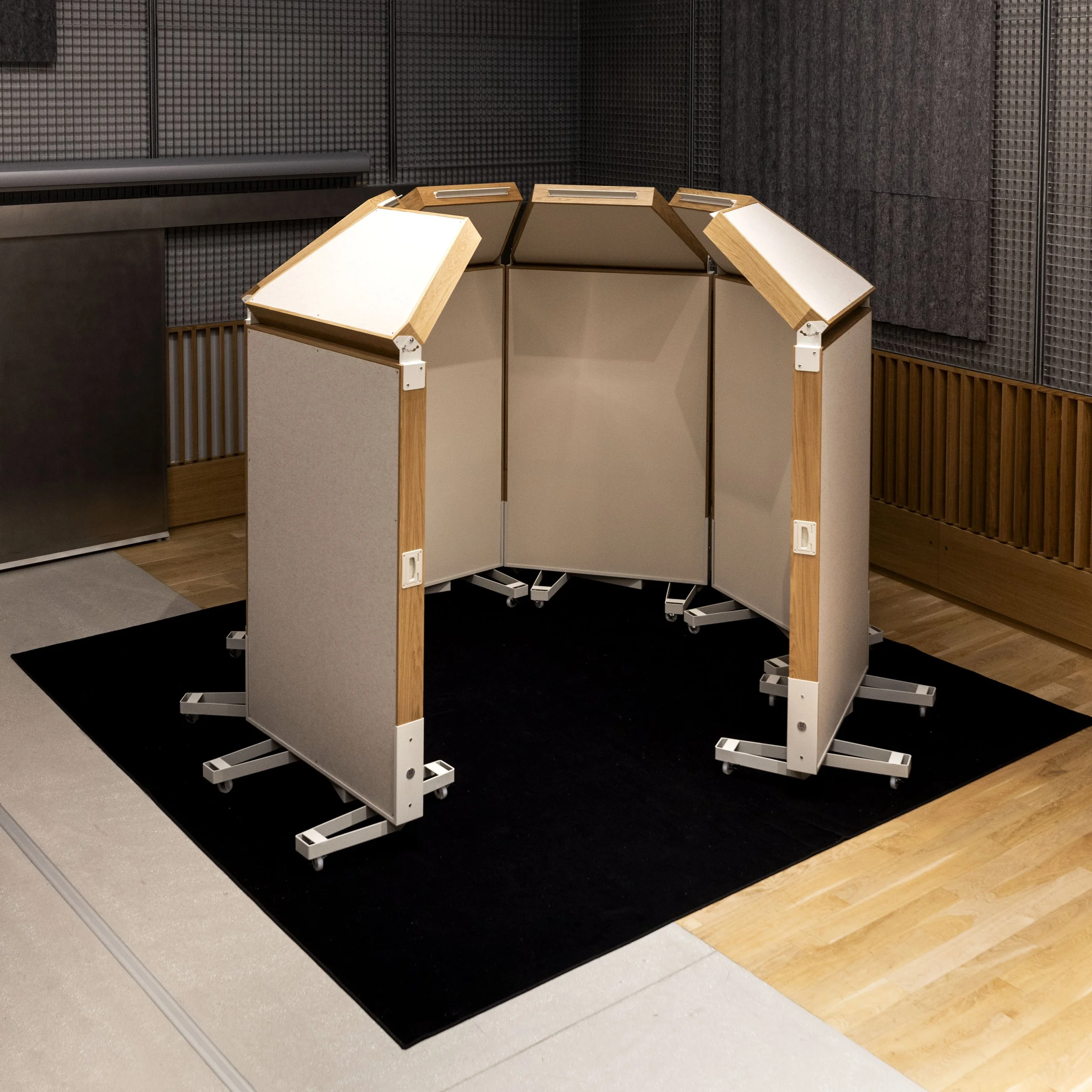Les panneaux Zig-zag sont des panneaux acoustiques mobiles, absorbants et réfléchissants, conçus pour les studios de musique, salles de répétition et espaces de podcasts.