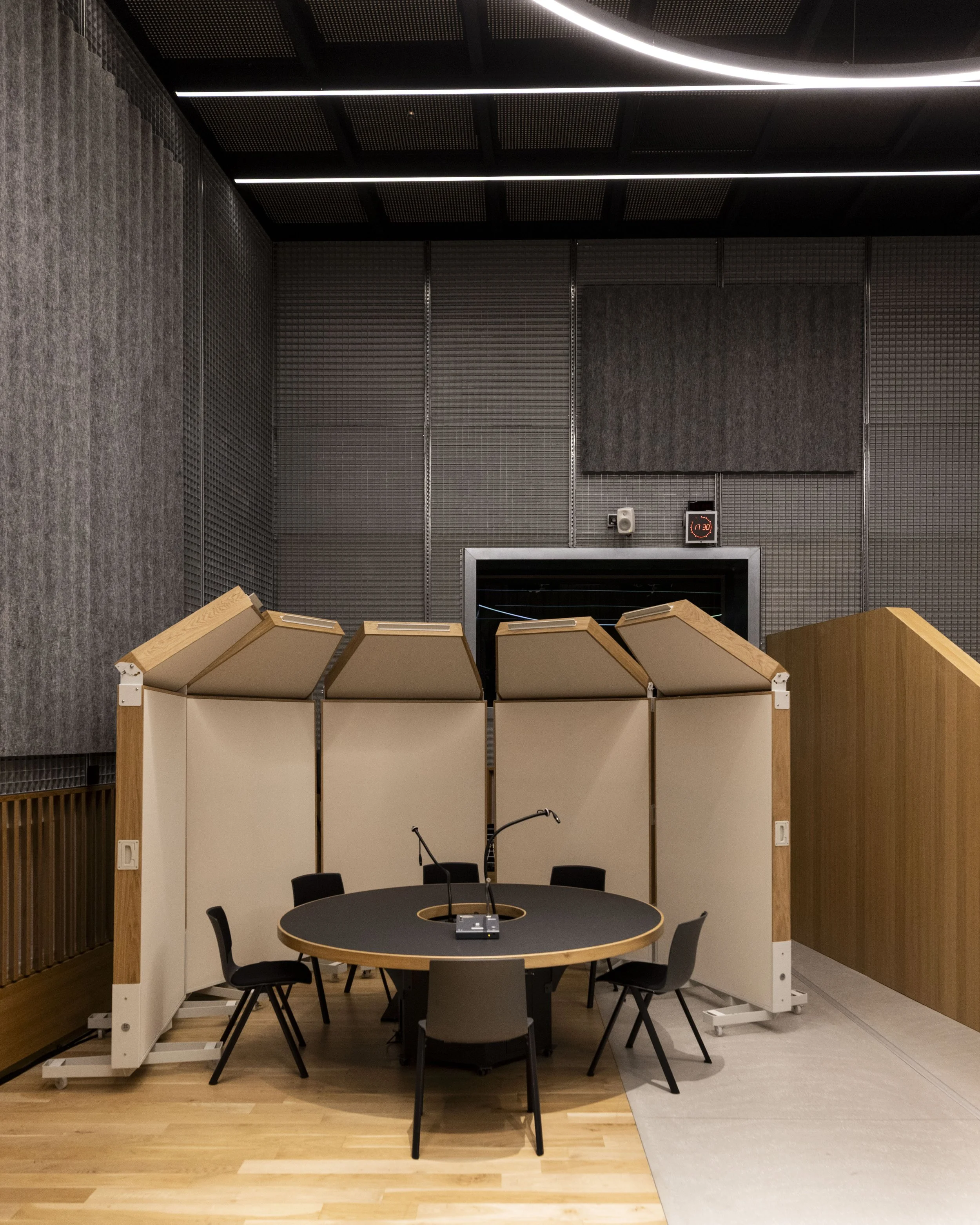 La maison de la Radio nous a sollicité il y a quelques mois afin de réaliser des panneaux acoustiques pour plusieurs de leurs studios. Ces derniers souhait pouvoir corriger/customiser l’acoustique de leurs studios et/ou de créer des scènes sonores.